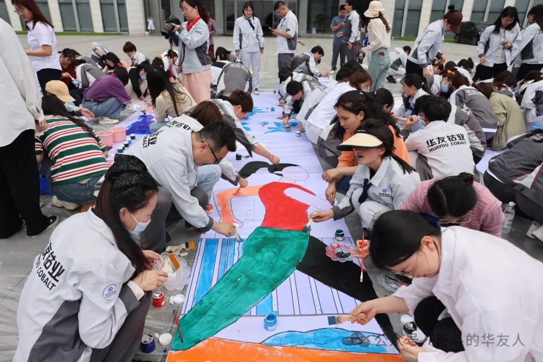 隨著畫布的鋪開,第二個(gè)項(xiàng)目開始?;顒?dòng)中,大家拿起手中的畫筆,端起五顏六色的顏料,在畫布上恣意揮灑著自己的熱愛與赤誠。通過近1小時(shí)的共同創(chuàng)作、潛心描繪,巨畫逐步完成,每一筆都體現(xiàn)出華友人的風(fēng)采與魅力,每個(gè)人都是這幅巨畫誕生過程中不可或缺的一環(huán)。