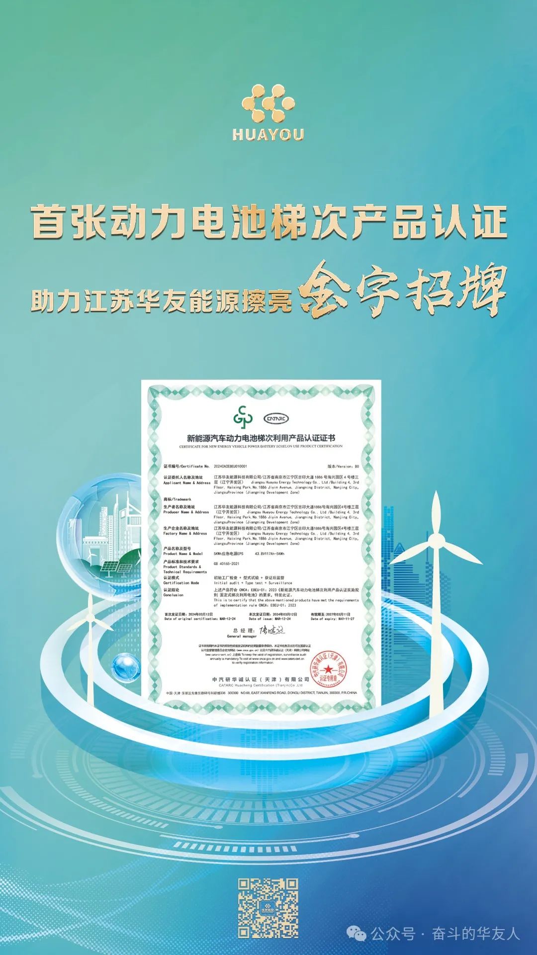 首張動力電池梯次產(chǎn)品認(rèn)證助力江蘇華友能源擦亮“金字招牌”