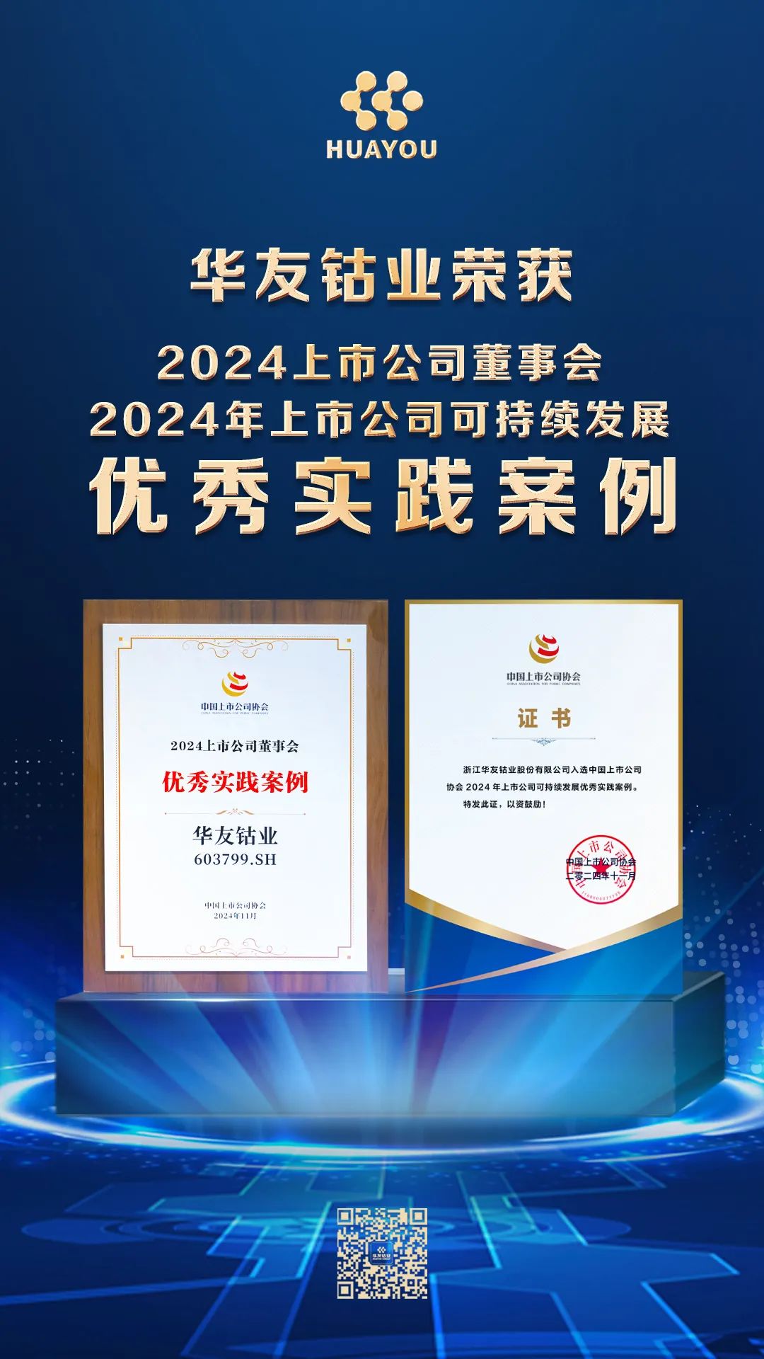11月22日,中國上市公司協(xié)會第三屆理事會第五次會議及2024上市公司可持續(xù)發(fā)展大會在京召開,會議期間分別舉辦了2024董事會最佳實踐案例及2024上市公司可持續(xù)發(fā)展最佳實踐案例發(fā)布儀式。華友鈷業(yè)成功入選“2024年上市公司董事會優(yōu)秀實踐案例”和“2024年上市公司可持續(xù)發(fā)展優(yōu)秀實踐案例”,體現(xiàn)了中國上市公司協(xié)會、資本市場對公司董事會履職能力與可持續(xù)發(fā)展實踐能力的高度認(rèn)可。
