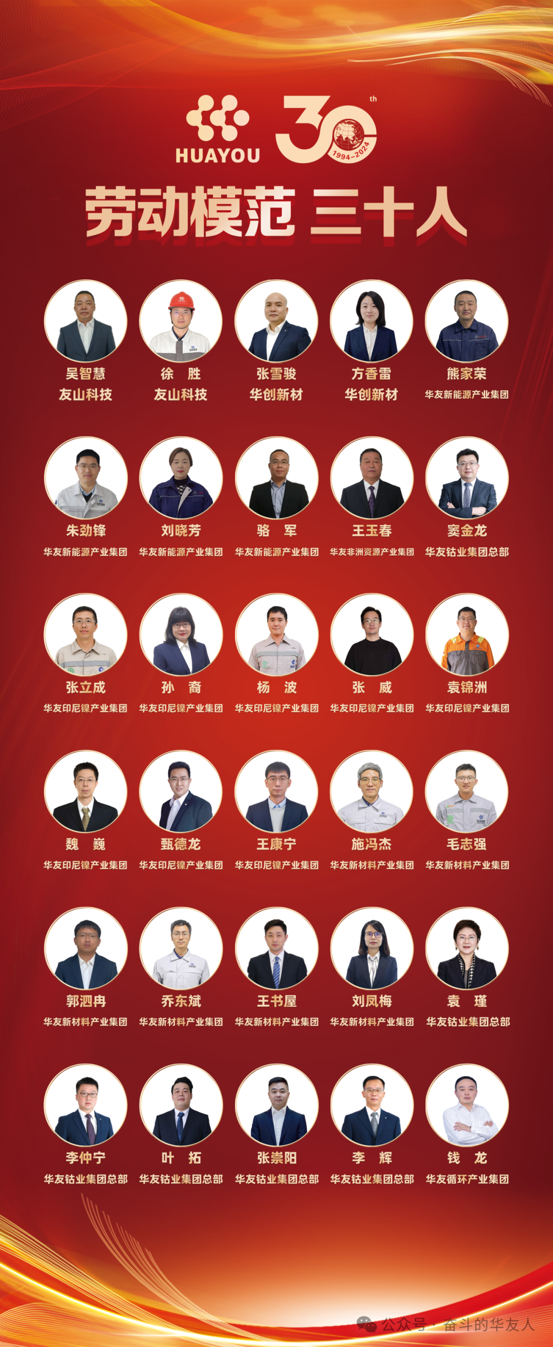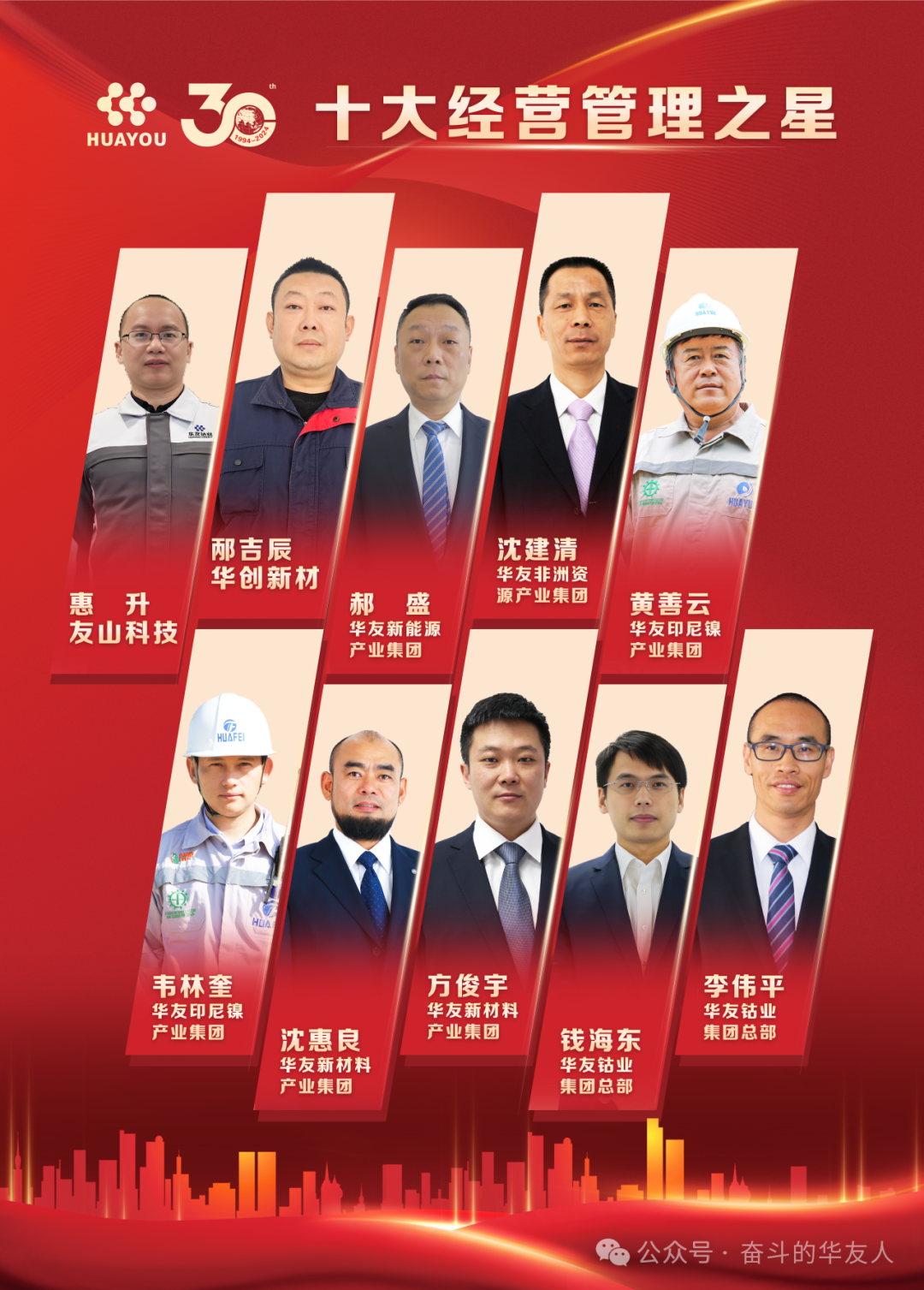 砥礪前行鑄輝煌,風(fēng)雨兼程譜新章。華友自默默蓄力到揚帆起航,三十載崢嶸歲月,涌現(xiàn)出一批又一批奮斗的華友人。12月7日,在華友創(chuàng)業(yè)三十周年慶典上,對三十周年勞動模范、十大經(jīng)營管理之星、十大科技創(chuàng)新之星、十大海外奮斗之星獲得者進行隆重表彰。