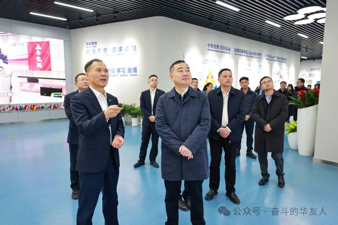 在華友鈷業(yè)研發(fā)大樓展廳,顏海榮一行詳細(xì)聽取了關(guān)于華友發(fā)展歷程、科技創(chuàng)新成果、全球化布局,ESG建設(shè)等內(nèi)容的介紹,對華友近年來的飛速發(fā)展與取得的創(chuàng)新成果給予充分肯定。