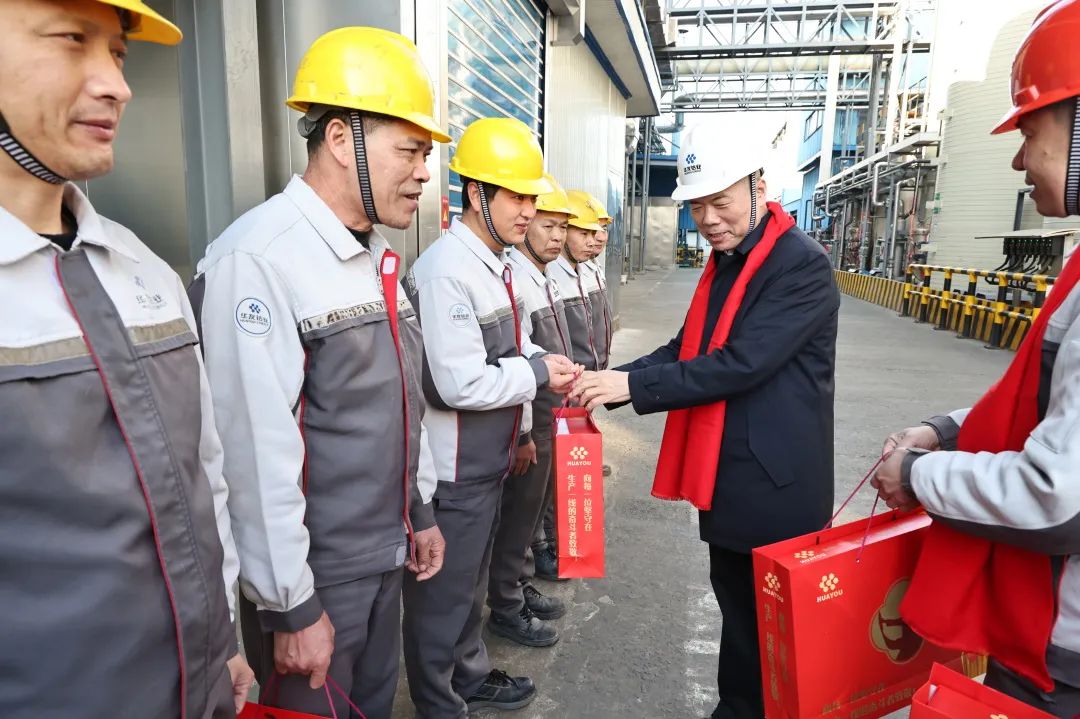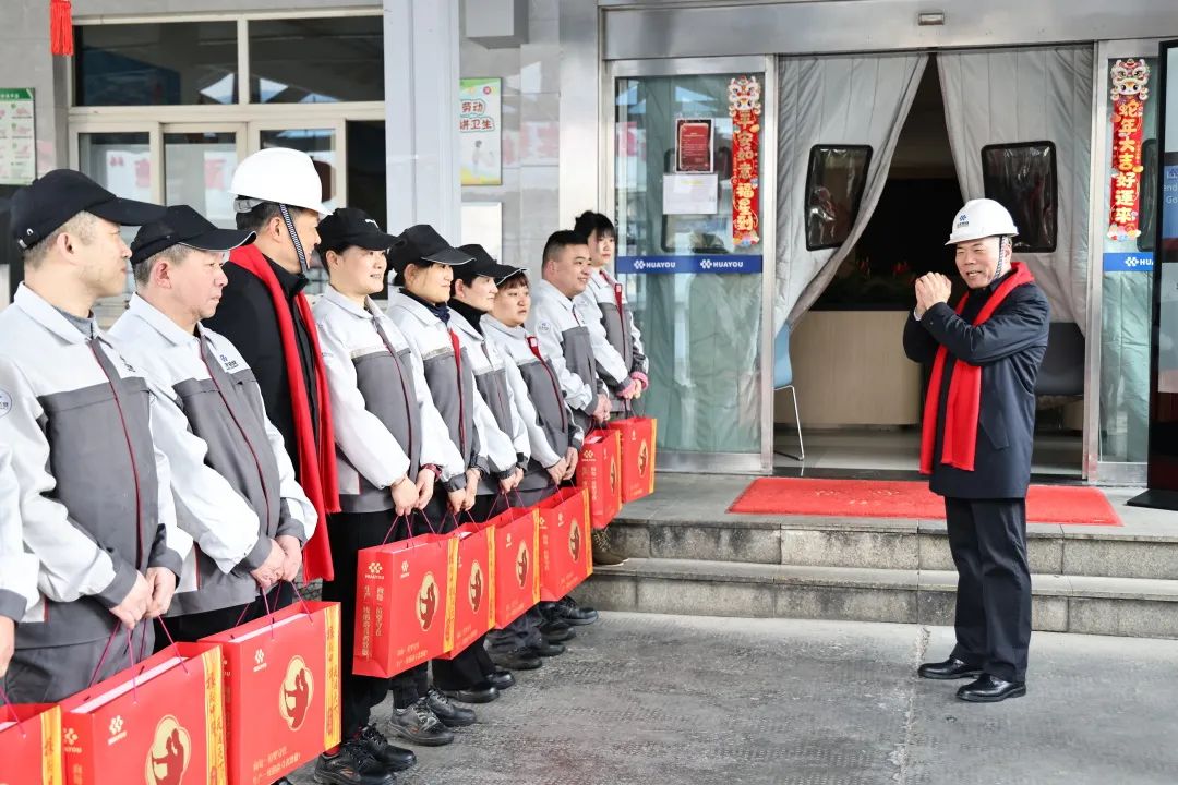 1月27日,華友新材料產(chǎn)業(yè)集團開展“年三十”慰問在崗員工活動,集團高級副總裁、新材料產(chǎn)業(yè)集團總裁徐偉,新材料產(chǎn)業(yè)集團副總裁劉秀慶深入生產(chǎn)制造一線、安環(huán)消防部門及研發(fā)單位等地,向在崗員工送去親切的慰問和誠摯的關懷,并衷心祝愿大家新的一年幸福安康、闔家歡樂、巳巳如意。