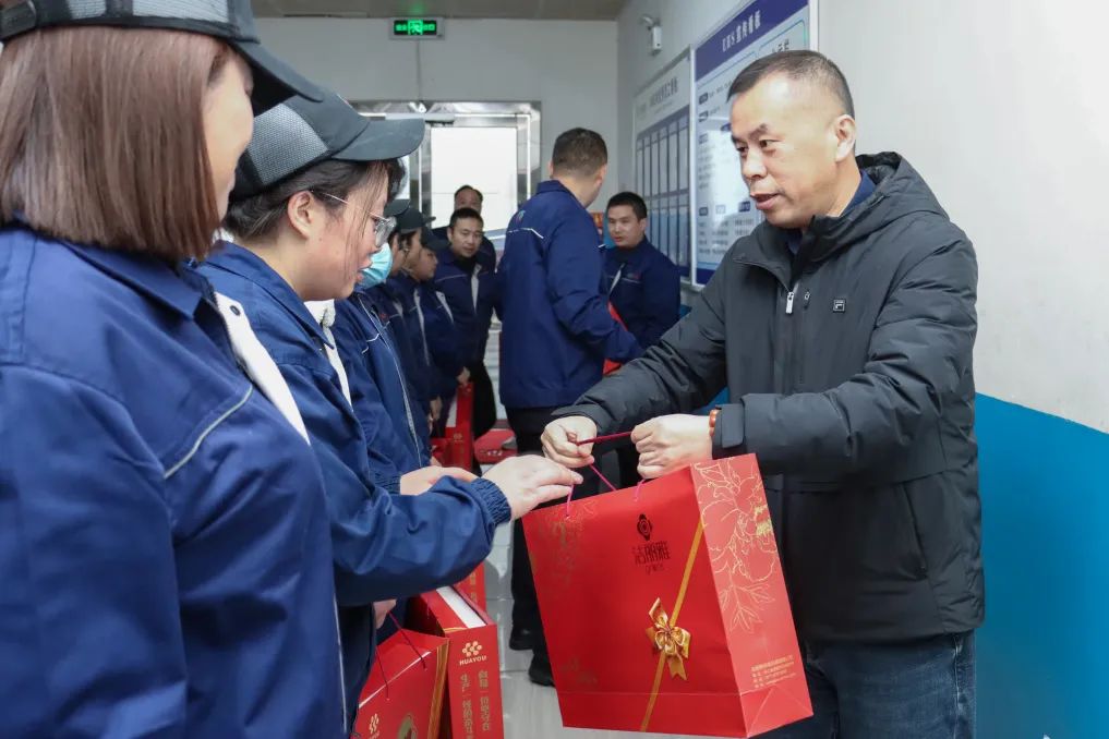 1月25日上午,成都基地領導走進生產(chǎn)車間,慰問春節(jié)期間堅守崗位的一線職工,為奮戰(zhàn)在一線的勞動者們送上新春禮物與祝福。