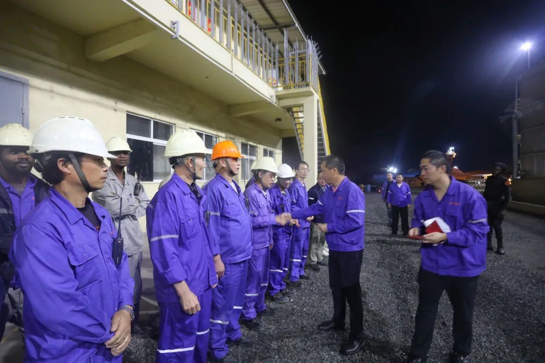 非洲資源產(chǎn)業(yè)集團領導一行,帶著公司滿滿的關懷,奔赴各個值班崗位。每到一處,領導們都與員工親切握手,將承載著美好祝福的紅包和物資送到他們手中,讓堅守在異國他鄉(xiāng)的員工們感受到家一般的溫暖。