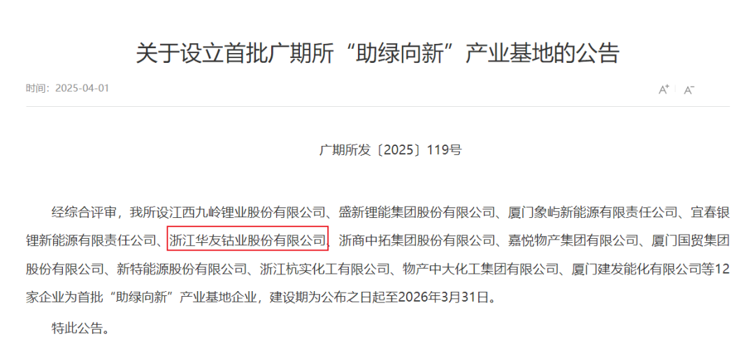 經(jīng)過全面而嚴格的資質(zhì)考察與遴選,華友鈷業(yè)憑借其在新能源領域的卓越表現(xiàn)和強大的綜合實力,成功獲批成為廣期所首批“助綠向新”產(chǎn)業(yè)基地,開啟了綠色低碳發(fā)展的新征程。