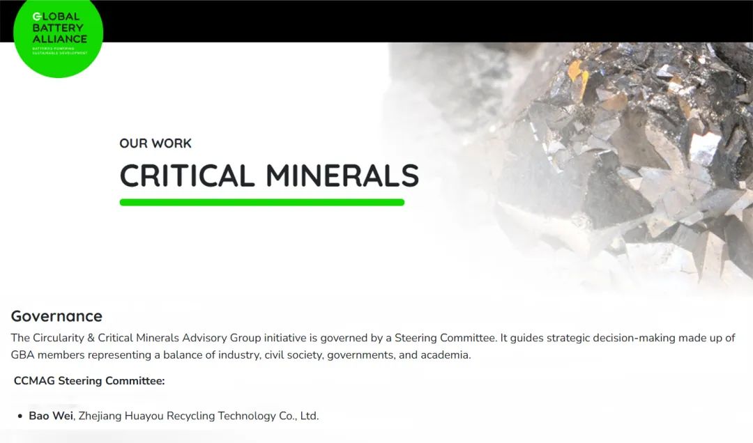 近期,經(jīng)全球電池聯(lián)盟(GBA)董事會(huì)一致提名并批準(zhǔn),華友循環(huán)正式加入其核心工作機(jī)構(gòu)——“循環(huán)與關(guān)鍵礦產(chǎn)(CCMAG)指導(dǎo)委員會(huì)”,標(biāo)志著華友循環(huán)在全球電池產(chǎn)業(yè)鏈可持續(xù)發(fā)展中的領(lǐng)導(dǎo)地位再獲國(guó)際權(quán)威認(rèn)可。