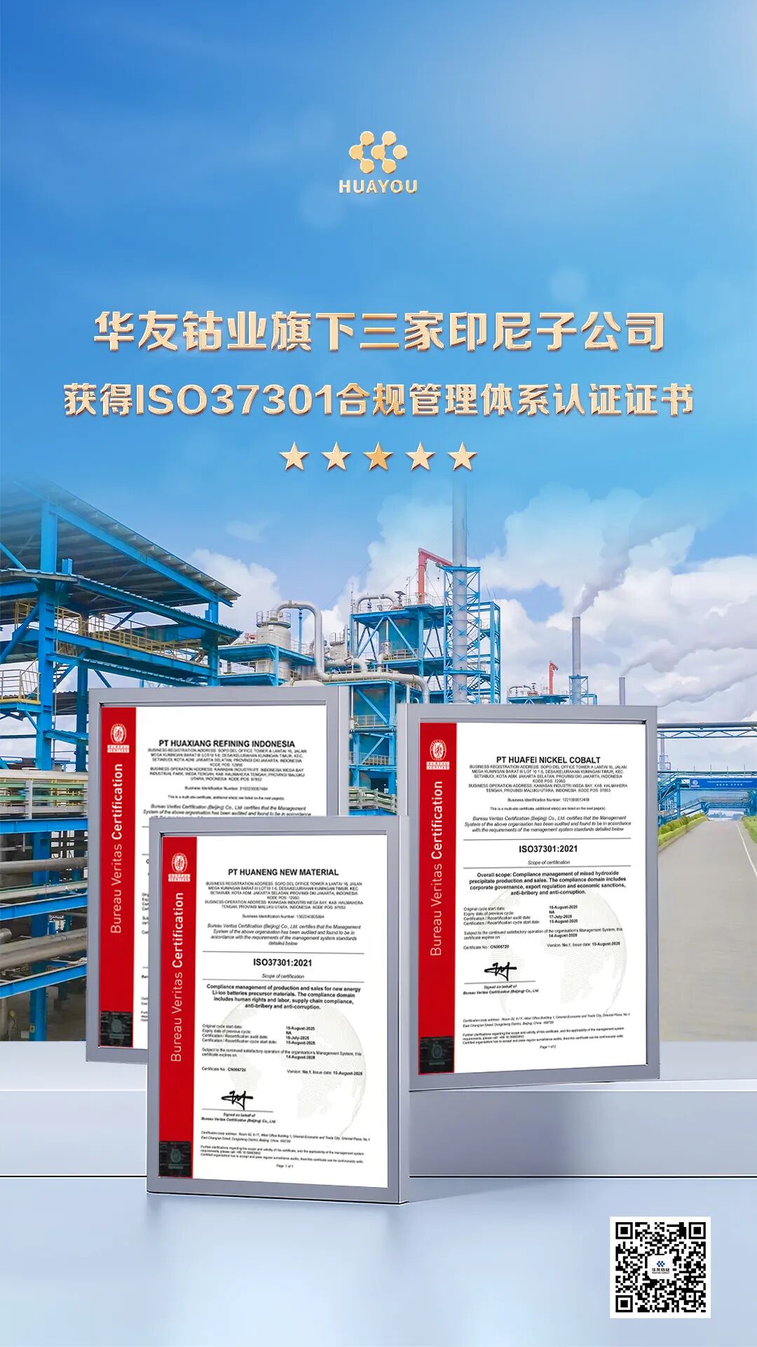 9月12日 ,華友鈷業(yè)旗下三家印尼子公司——華飛鎳鈷(印尼)有限公司、華翔精煉印尼有限公司、華能新材料有限公司正式獲得必維集團(Bureau Veritas)頒發(fā)的ISO 37301合規(guī)管理體系認證證書。這標(biāo)志著華友鈷業(yè)印尼新能源鋰電材料一體化產(chǎn)業(yè)基地全面接軌國際合規(guī)標(biāo)準(zhǔn),為全球化發(fā)展奠定了堅實基礎(chǔ)。