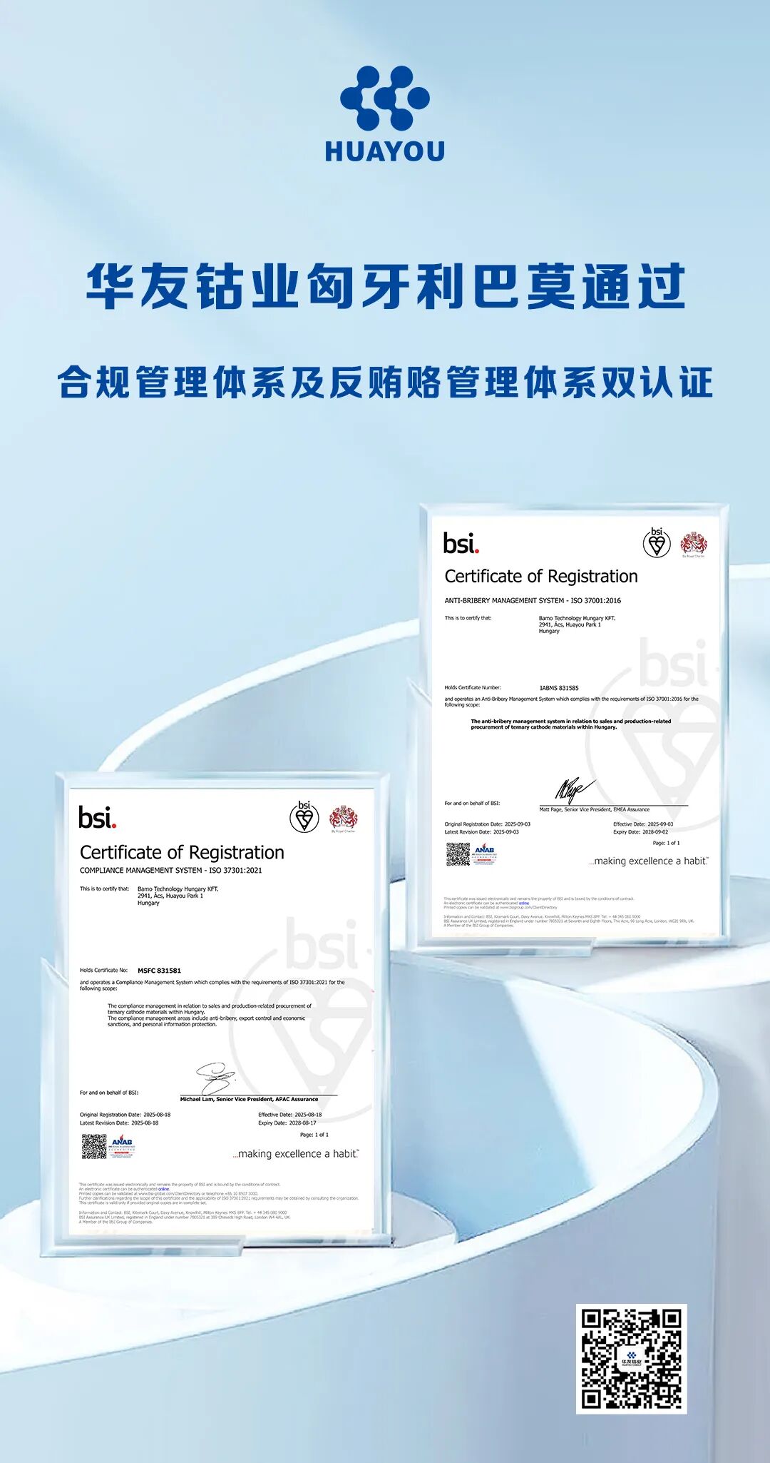 9月15日,華友鈷業(yè)旗下巴莫科技(匈牙利)有限公司(以下簡稱“匈牙利巴莫”)合規(guī)管理體系及反賄賂管理體系認(rèn)證頒證儀式舉行,標(biāo)志著匈牙利巴莫成為匈牙利首家通過ISO 37301合規(guī)管理體系及ISO 37001反賄賂管理體系雙認(rèn)證的中資pg國際,彰顯了華友在新能源鋰電材料領(lǐng)域的合規(guī)管理領(lǐng)先地位。
