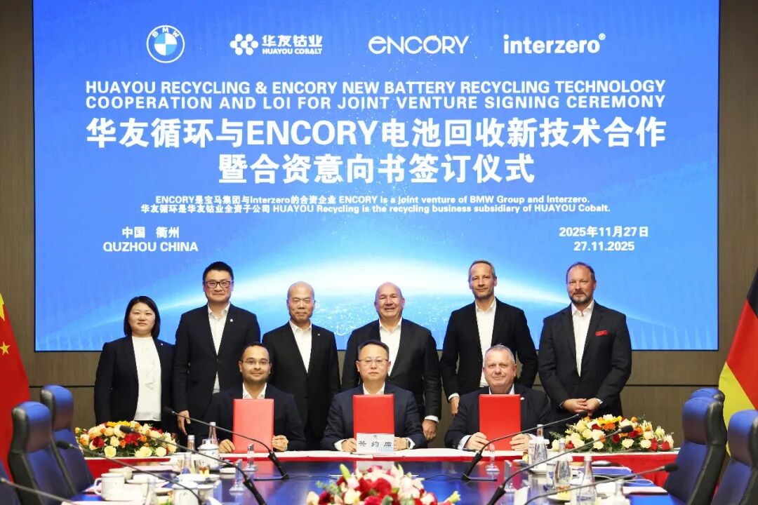 近日,浙江華友循環(huán)科技有限公司與Encory(寶科利)集團(tuán)正式簽署電池回收新技術(shù)合作暨合資意向書。BMW(寶馬)集團(tuán)戰(zhàn)略投資高級(jí)副總裁雷納·福雷爾、Interzero(茵特保)集團(tuán)董事長史偉浩、華友鈷業(yè)董事長陳雪華見證簽約。